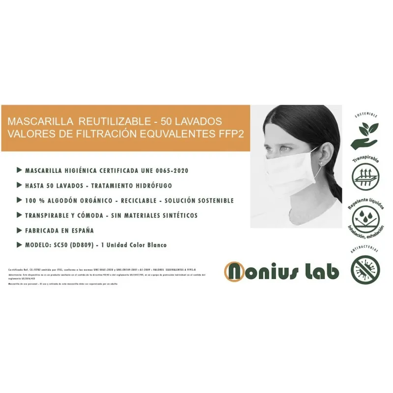 Se puede lavar hasta 50 veces para volver a utilizarla con total seguridad.