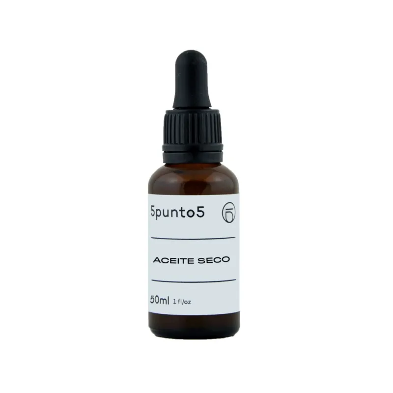 Este aceite seco de la marca 5punto5 es una mezcla de vitamina E, ácido maslínico y una selecta selección de aceites vegetales que ayudan a reparar y nutrir la piel y el cuero cabelludo absorbiéndose rápidamente y dejándolos muy suaves al tacto. Es recomendado para ser usado en cualquier tipo de piel.