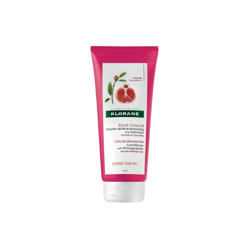 Klorane bálsamo a la granada para después del champú, 200 ml sirve para cuidar el cabello, fijar el color y desenredarlo. Sana las partes dañadas y aporta brillo y suavidad. Está especialmente recomendado para las cabelleras afectadas por el uso continuo de tinturas y decoloración.
