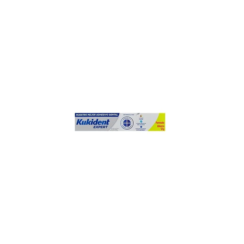 Kukident Expert es una pasta adhesiva dental, utilizada para dentadura postiza, de acción antibacteriana.