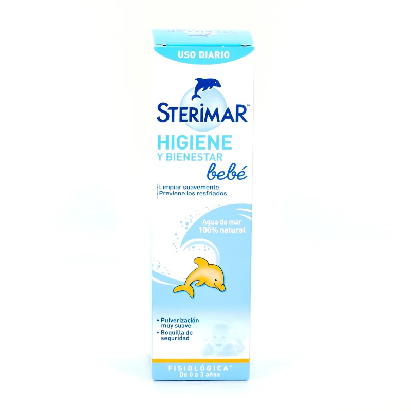 Sterimar Higiene y bienestar bebé agua de mar es un spray natural que ayuda a aliviar la congestión nasal y los síntomas respiratorios en niños desde 0 a 3 años de edad.