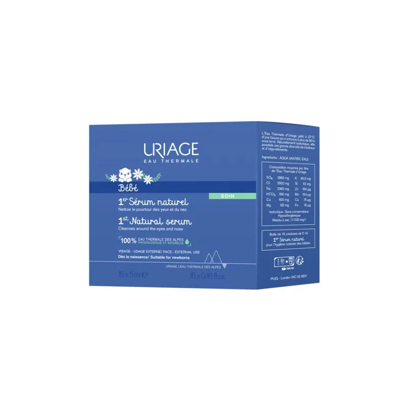 Uriage Bebé 1er Serum Natural está especialmente indicado para la hidratación y limpieza de la piel del cuerpo, rostro, ojos y nariz de los bebés. Su delicada fórmula a base de agua termal de Uriage proporciona minerales y oligoelementos nutritivos que calman, suavizan y purifican la dermis y las mucosas.
