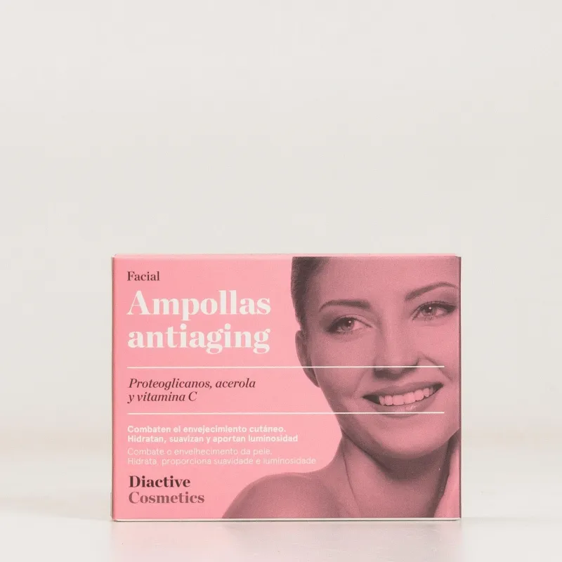 Son ampollas que utilizas en casa como apoyo para mejorar tu piel. Están compuestas por proteoglicanos, acerola y vitamina C. Las ampollas ayudan a que las líneas finas y las arrugas disminuyan.