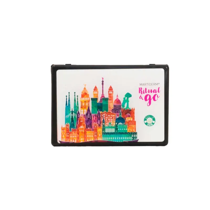 Martiderm Ritual & Go es un práctico estuche porta ampollas que incluye una ampolla flash (para obtener una piel deslumbrante y de acción inmediata anti-fatiga) y otra ampolla photo age, con un alto porcentaje de vitamina C.