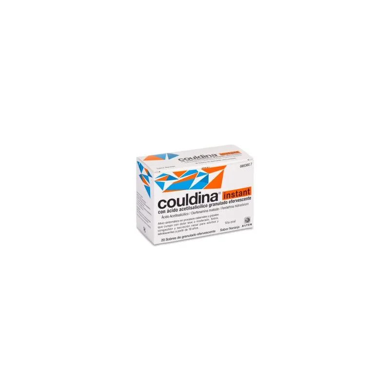 Couldina Instant con Ácido Acetilsalicílico es una asociación de ácido acetilsalicílico, clorfenamina y fenilefrina. Está indicado en adultos y adolescentes a partir de 16 años para el alivio de los síntomas de los catarros y gripes que cursan con fiebre, dolor leve o moderado, congestión y secreción nasal.