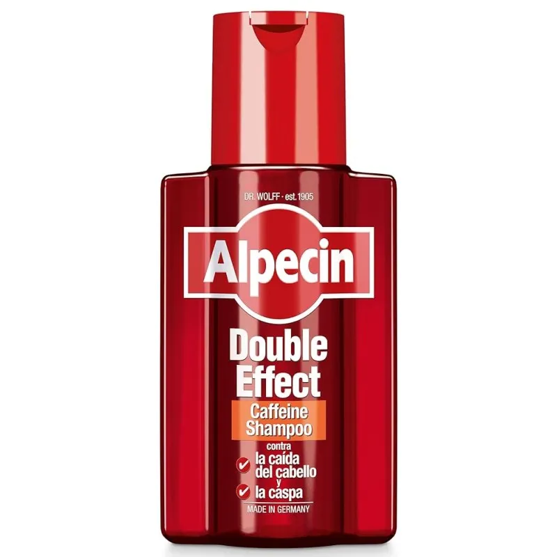 Alpecin Caffeine Champú Doble Efecto es un champú diseñado para combatir la caída del cabello y eliminar la caspa simultáneamente.
