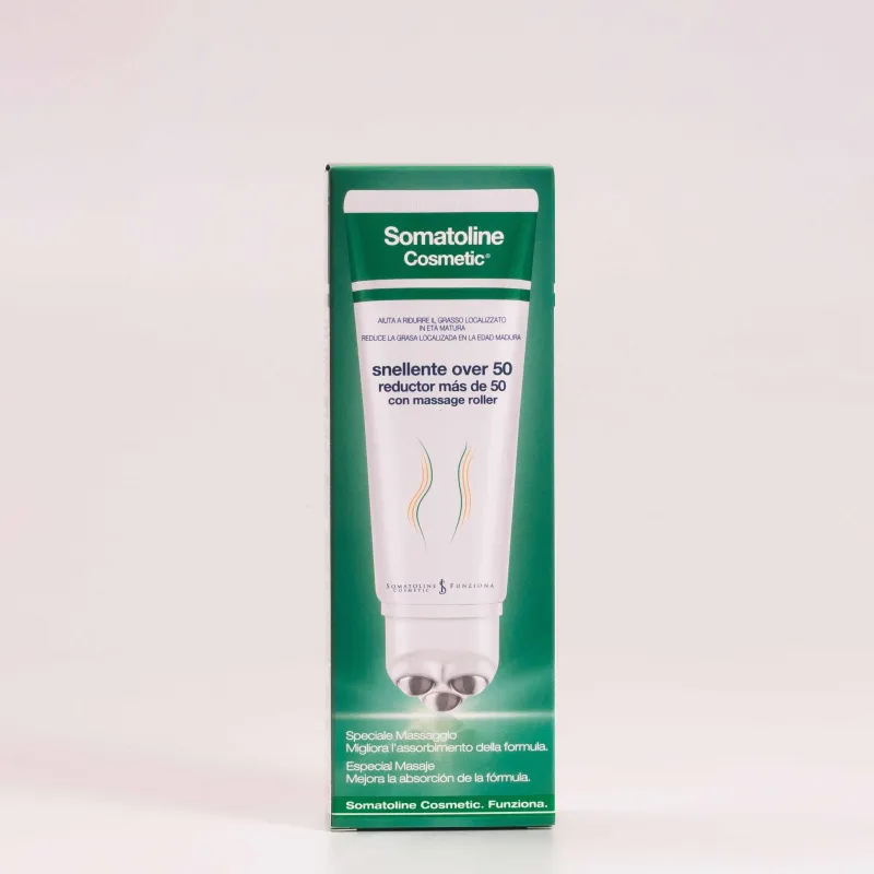 El tratamiento Reductor Somatoline Cosmetic para mayores de 50 con aplicador “massage roller” contribuye a reducir de forma eficaz la grasa localizada en la cintura y en las caderas.