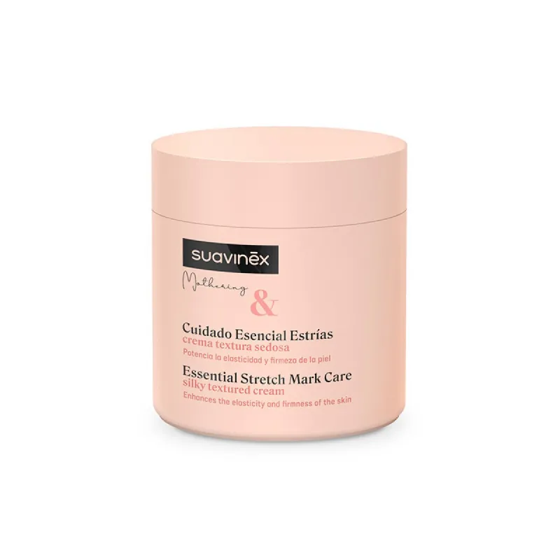 Suavinex Cuidado Esencial Estrías está diseñado para ser utilizado durante el embarazo, la lactancia o en cualquier momento en el que la piel esté sometida a cambios bruscos de peso. Ayuda a prevenir la formación de estrías y a mejorar la apariencia de las ya existentes, gracias a sus ingredientes activos que estimulan la regeneración celular y mejoran la textura de la piel.