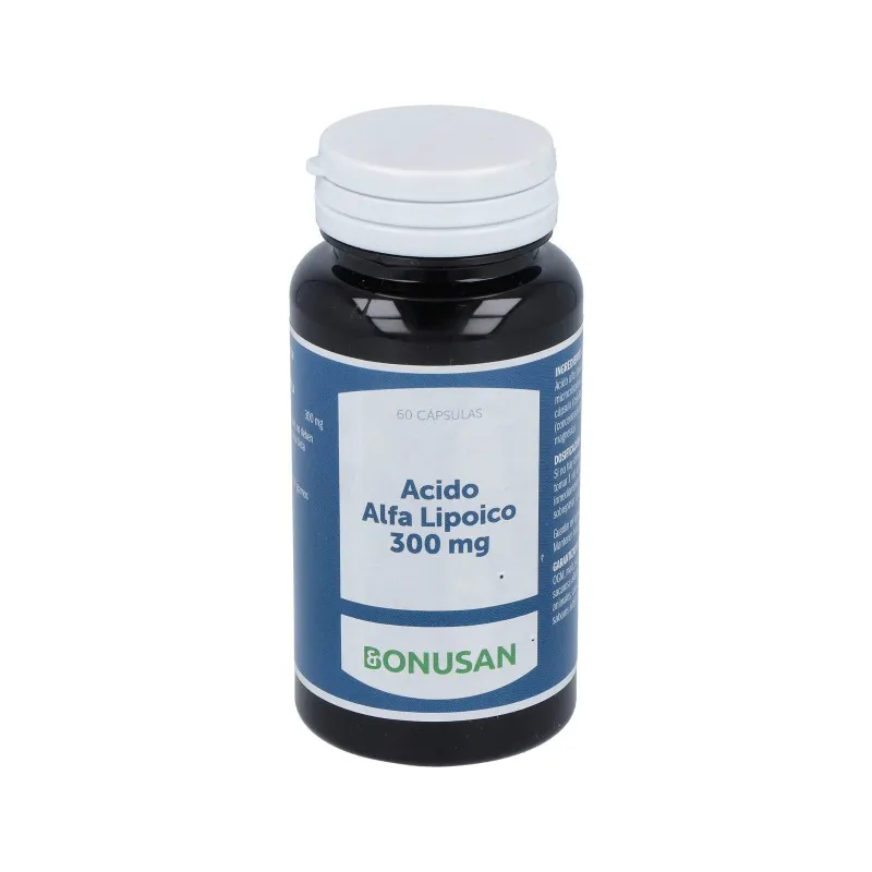 Bonusan Ácido Alfa Lipoico 300mg en envase de 60 cápsulas aporta ácido alfa lipoico en su forma pura y concentrada. Este compuesto es un nutriente implicado en procesos energéticos y posee actividad antioxidante, lo que favorece el mantenimiento de un estado celular equilibrado. Se presenta en formato en cápsulas de fácil ingesta para incorporar al día a día como parte de una dieta variada.