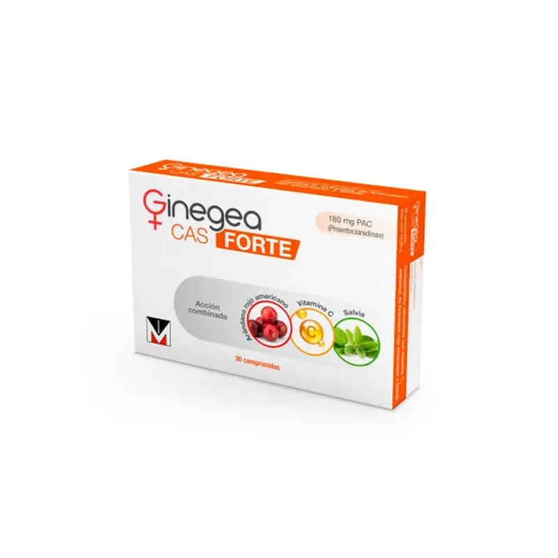 Ginegea Cas Forte es un complemento alimenticio formulado a base de extracto de arándano rojo americano, vitamina C y salvia. Sus ingredientes están orientados a contribuir al equilibrio del ecosistema urinario complementando la dieta diaria. Este producto, en el marco de un estilo de vida saludable, aporta compuestos vegetales estandarizados que participan en el mantenimiento de las funciones normales del tracto urinario.