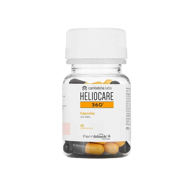 Heliocare 360 cápsulas es un complemento alimenticio diseñado para proporcionar un aporte de antioxidantes que contribuyen a la protección de las células frente al daño oxidativo derivado de la exposición solar.