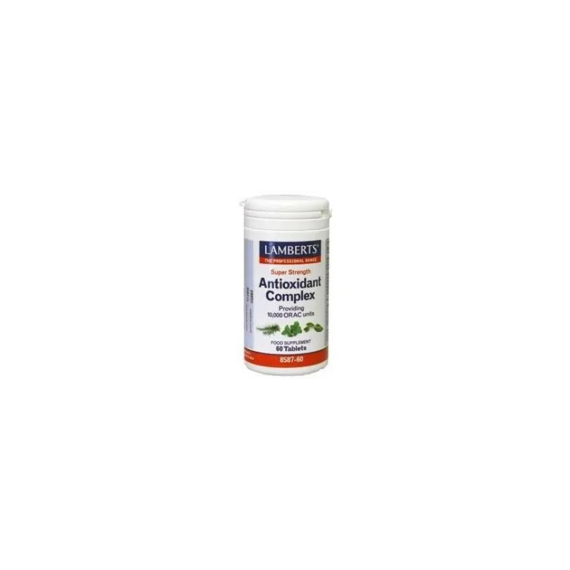 Lamberts Complejo Antioxidante es un complemento alimenticio que combina extractos de semillas de uva, hojas de té verde, orégano y romero. Su fórmula está diseñada para aportar una amplia variedad de polifenoles, flavonoides y compuestos fenólicos cuya función es apoyar los mecanismos internos de defensa celular frente al estrés oxidativo. Cada comprimido contiene una dosis estandarizada de estos extractos vegetales.