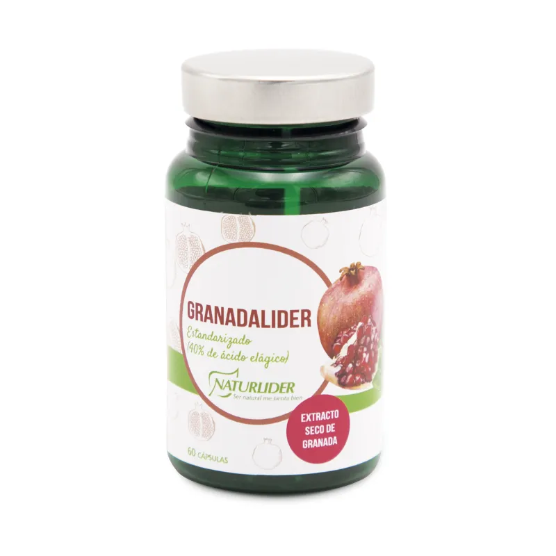 NaturLider GranadaLider es un complemento alimenticio que contiene extracto seco de granada concentrado en polifenoles antioxidantes. El fruto de granada aporta fitoquímicos que intervienen en la protección de las células frente al estrés oxidativo, y su estándar de ácido cítrico colabora en procesos de depuración y equilibrio del pH. Este complemento alimenticio se integra en un estilo de vida saludable basado en una dieta variada.