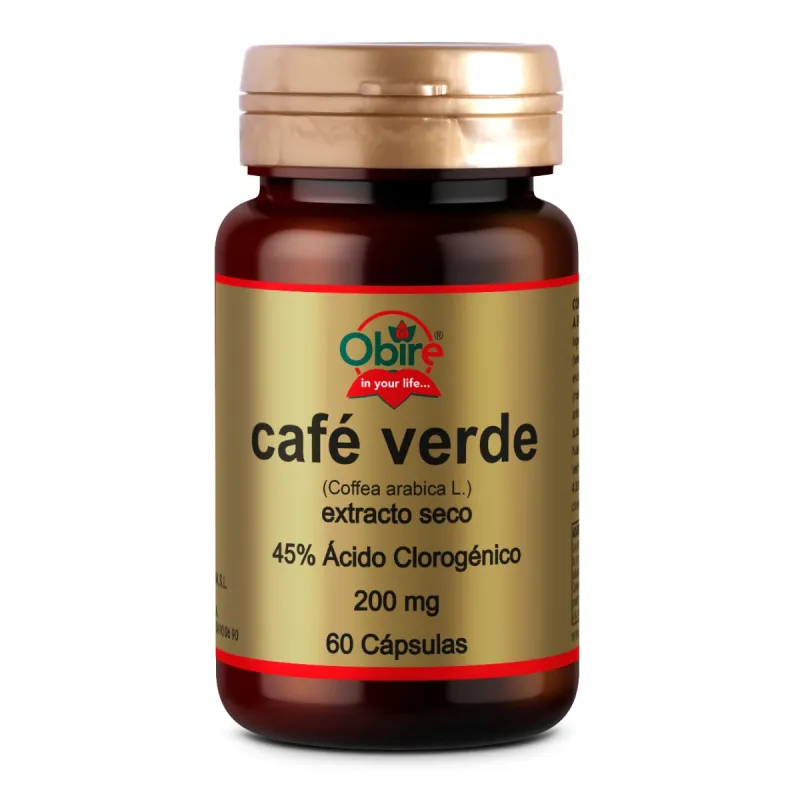 Obire Café verde 200 mg es un complemento alimenticio formulado a base de extracto seco de café verde (Coffea arabica L.) estandarizado al 45% en ácido clorogénico. Este compuesto fenólico se ha seleccionado por su capacidad para actuar como antioxidante y por su participación en procesos metabólicos relacionados con el metabolismo de lípidos. El producto está dirigido a adultos que buscan reforzar su ingesta de antioxidantes y apoyar sus hábitos de control de peso dentro de un estilo de vida equilibrado.