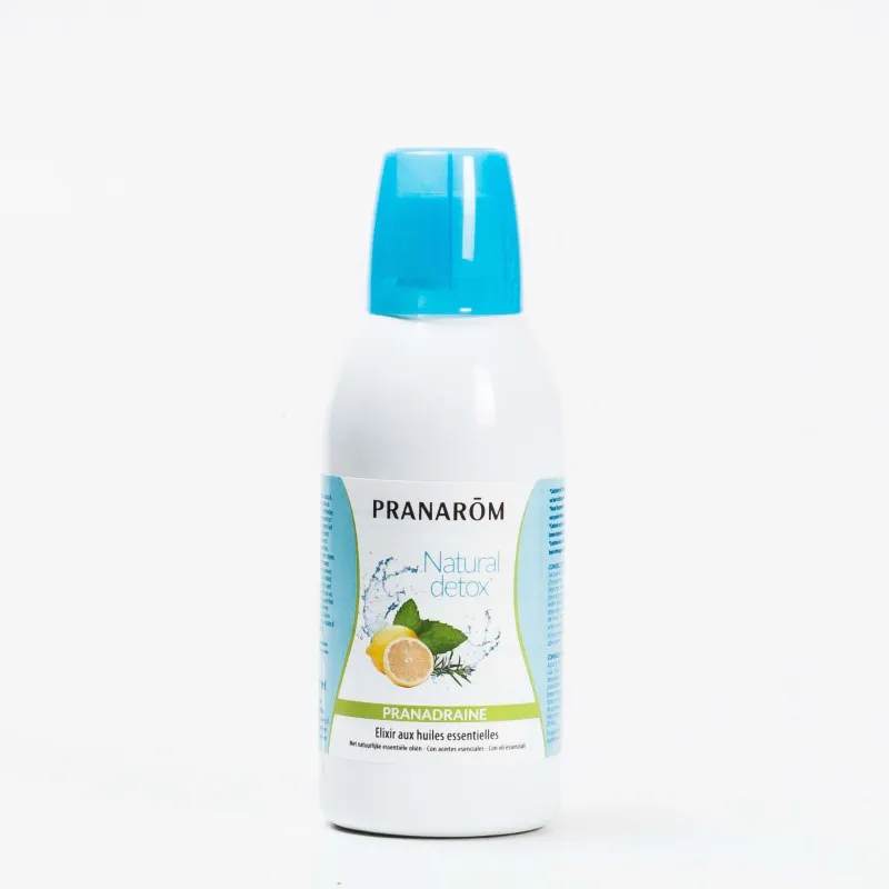 Pranadraine Detox de Pranarom es una bebida de fórmula desintoxicante elaborada a partir de ingredientes de origen natural y ecológico, seleccionados por su capacidad para apoyar las funciones de los sistemas excretores del organismo. Esta fórmula combina extractos de frutas, hierbas y esencias que, en conjunto, pueden favorecer la eliminación de sustancias de desecho a lo largo del día.