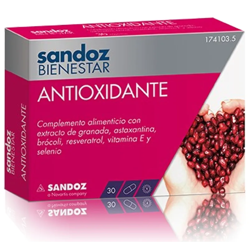 Sandoz Bienestar Antioxidante es un complemento alimenticio formulado con una sinergia de ingredientes de origen vegetal y micronutrientes seleccionados por su actividad antioxidante. Sus componentes pueden contribuir a mantener el equilibrio de los procesos biológicos frente al estrés oxidativo, apoyando las funciones celulares.