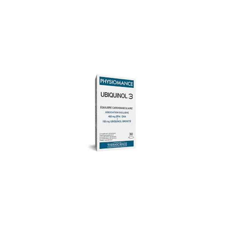 Ubiquinol 3 30 Cápsulas de Therascience es un complemento alimenticio que combina Omega-3 de aceite de pescado y Coenzima Q10 en forma de ubiquinol.