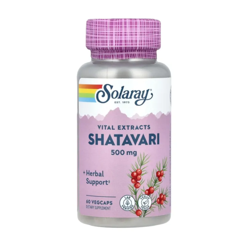 Solaray Shatavari 500 mg es un complemento alimenticio en cápsulas vegetales que contiene extracto de Shatavari (Asparagus racemosus), una planta utilizada tradicionalmente en la medicina ayurvédica. Cada cápsula proporciona 500 mg de extracto estandarizado, rico en saponinas y fitoestrógenos naturales. Este complemento está formulado para aportar dichos compuestos, que se asocian a funciones de soporte en el equilibrio hormonal femenino y al mantenimiento del bienestar general.