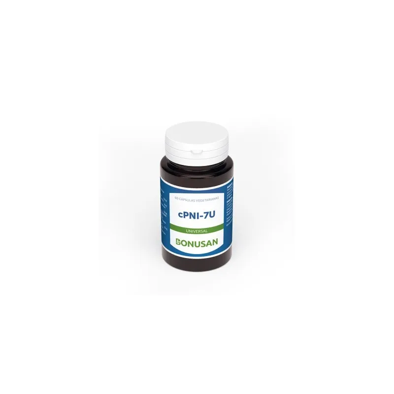 Bonusan cPNI - 7U 60 cápsulas es un complemento alimenticio de alta calidad, desarrollado mediante procesos de extracción respetuosos que garantizan la pureza y actividad de sus principios activos. Cada ingrediente ha sido seleccionado en base a su perfil científico, para contribuir al bienestar general y al equilibrio del sistema inmunológico. Este producto está especialmente indicado para adultos que deseen complementar su dieta con ingredientes de origen natural y respaldados por estudios que avalan sus efectos en la salud celular. El producto está libre de gluten y lactosa, apto para dietas variadas.