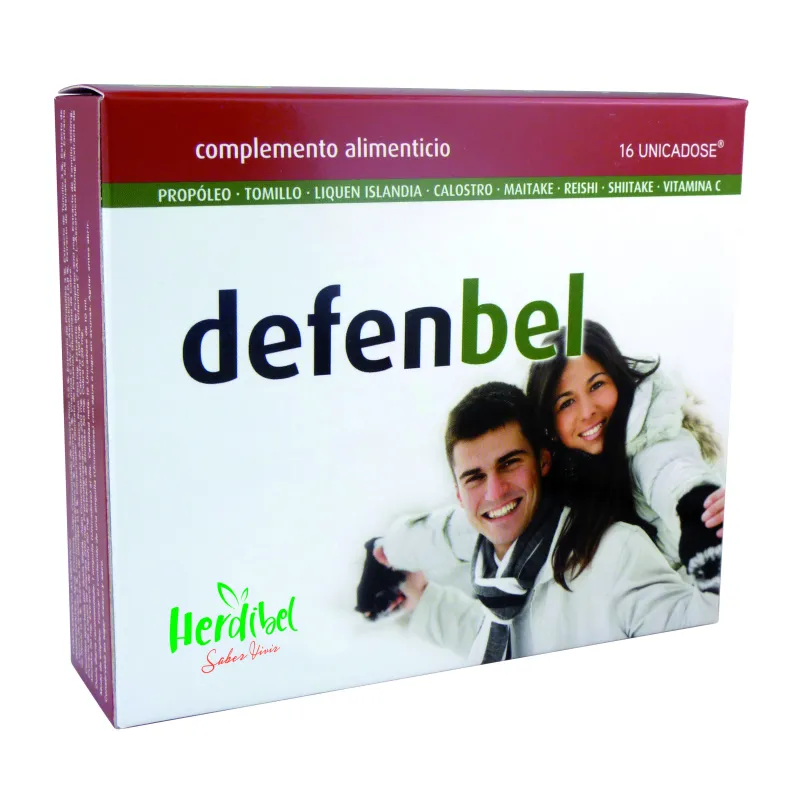 Herdibel Defenbel es un complemento alimenticio formulado con extractos de saúco rojo, propóleo, tomillo, liquen de Islandia, setas medicinales (Reishi, Shiitake y Maitake) y vitamina C. Su composición aporta una combinación de ingredientes naturales seleccionados para contribuir al mantenimiento de la función inmunitaria normal y al equilibrio de la microbiota intestinal. Los extractos vegetales y de hongos incluidos proceden de cultivos y recolección controlada, garantizando la calidad y seguridad del producto. Está formulado sin azúcares añadidos, sin colorantes ni conservantes artificiales, adecuado para dietas veganas.