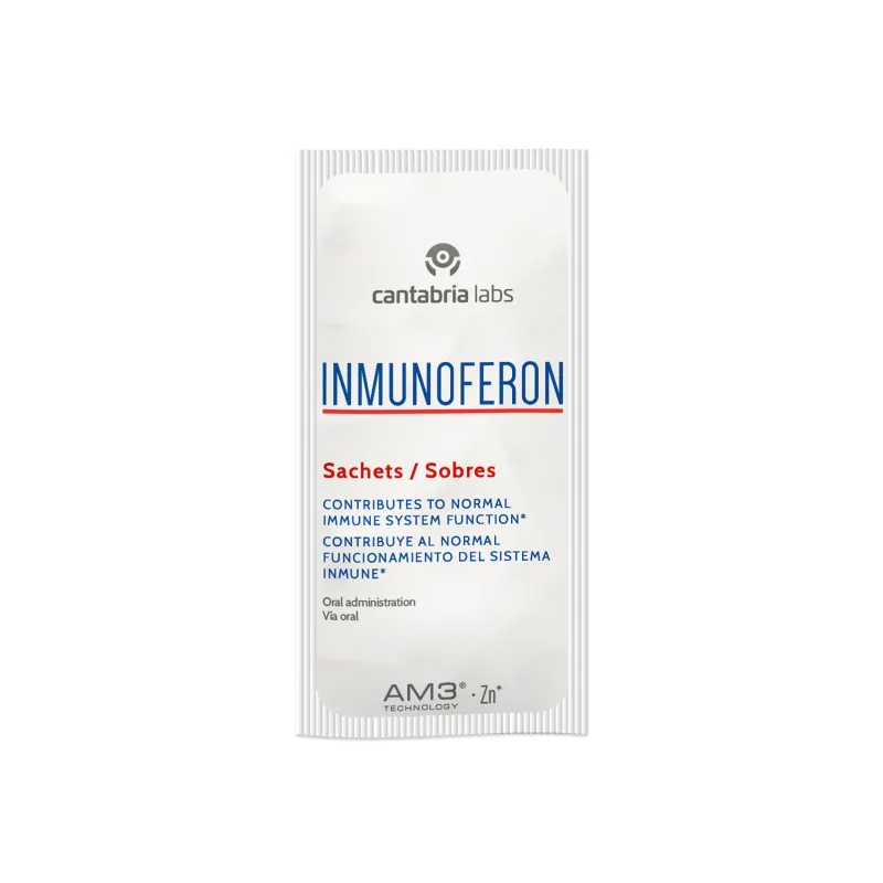 Inmunoferon es un complemento alimenticio en sobres que aporta AM3 (glucomanano y proteína de soja) y Zinc para contribuir al funcionamiento normal del sistema inmunitario con un agradable sabor.
