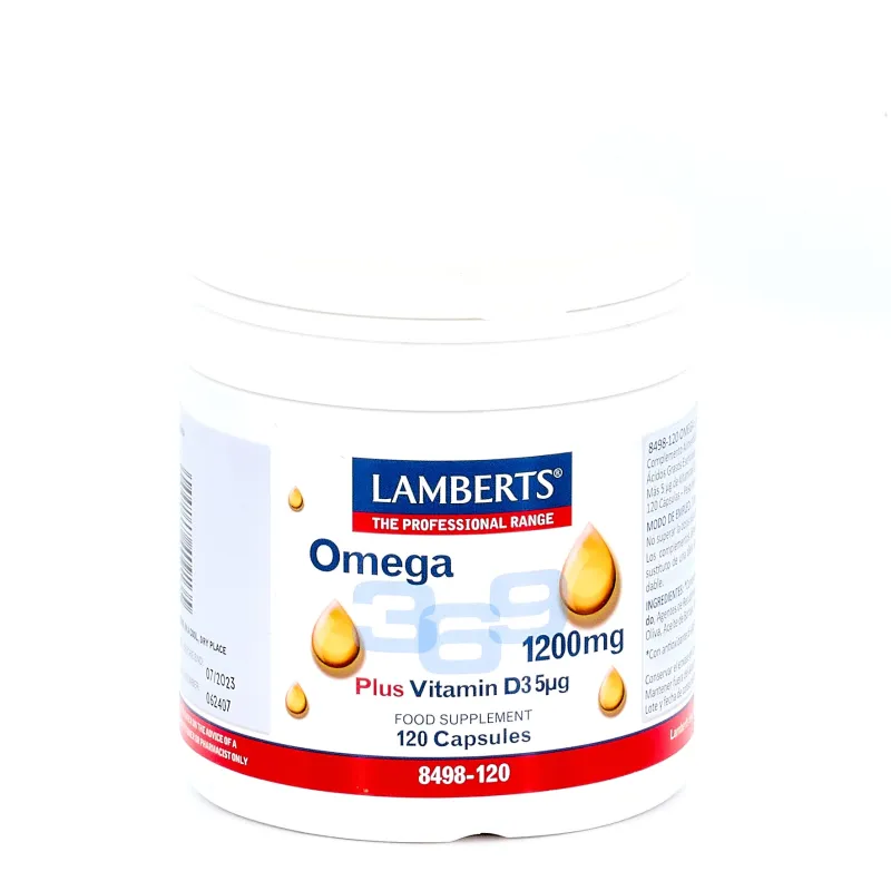 Lamberts Omega 3,6,9 1200 mg junto con vitamina D3 es un complemento alimenticio diseñado para proporcionar una fuente concentrada de ácidos grasos esenciales y vitamina D, nutrientes que el organismo no sintetiza en cantidades suficientes y que deben obtenerse de la dieta. Cada cápsula contiene una combinación equilibrada de aceites de pescado, germen de trigo y oliva para aportar omega-3, omega-6 y omega-9, así como colecalciferol natural. Esta fórmula está pensada para personas con dificultades para incorporar fuentes naturales de estos nutrientes en la alimentación habitual, facilitando la ingesta diaria recomendada dentro de un estilo de vida moderno y activo.