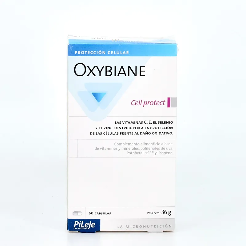 Pileje Oxybiane Cell Protect es un complemento alimenticio que combina vitaminas y minerales seleccionados para complementar la ingesta de nutrientes con funciones contribuyentes a la protección de las células y al funcionamiento normal del sistema inmunitario. La vitamina C y la vitamina E aportan actividad antioxidante, la vitamina B2 contribuye al metabolismo energético y el selenio y el zinc contribuyen al mantenimiento del sistema inmunitario y a la protección de las células frente al estrés oxidativo.