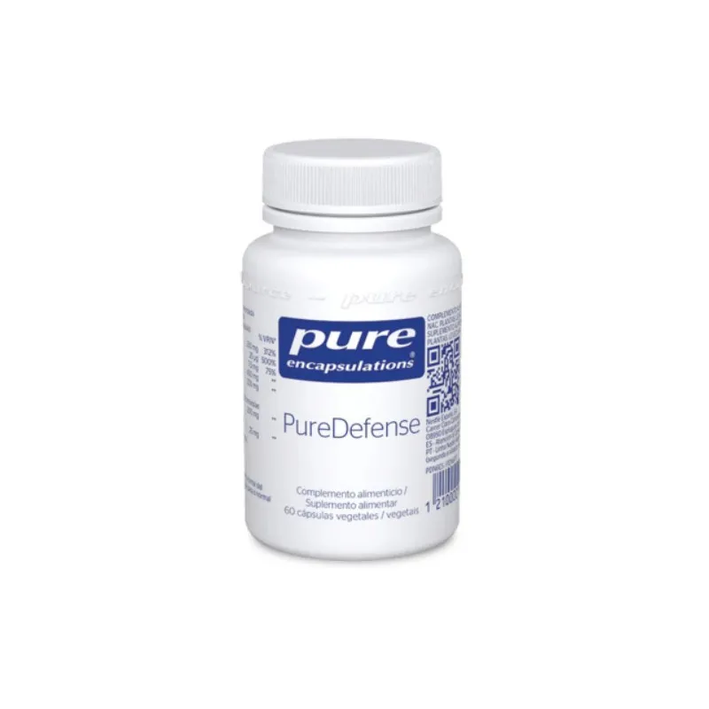 Pure Defense es un complemento alimenticio en cápsulas vegetales formulado con una combinación sinérgica de ingredientes que aportan nutrientes esenciales. Cada cápsula aporta una dosis equilibrada de vitamina C, zinc y extracto de equinácea, seleccionados por su contribución al funcionamiento normal de las defensas del organismo.