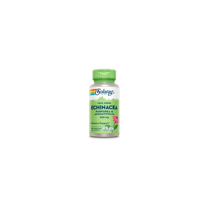 Solaray Echinacea Purpurea Angustifolia es un complemento alimenticio que combina extractos de Echinacea purpurea y Echinacea angustifolia, estandarizados para ofrecer una concentración constante de compuestos fenólicos y polisacáridos. Ambos tipos de echinácea se utilizan para contribuir al mantenimiento de las funciones inmunológicas y al equilibrio de las defensas naturales.