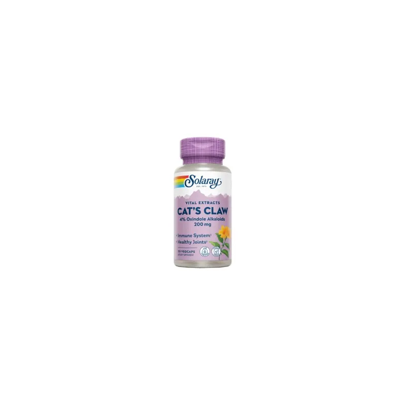 Solaray Uña de Gato es un complemento alimenticio en cápsulas vegetales a base de extracto de Uncaria tomentosa, planta originaria de la Amazonia reconocida por sus alcaloides y glucósidos. Su formulación se ha diseñado para ofrecer sustancias con potencial antioxidante y antiinflamatorio, con el fin de respaldar las funciones naturales de defensa del organismo. Este complemento aporta los principios activos característicos de la uña de gato, como alcaloides oxindólicos y polisacáridos, en un formato cómodo.