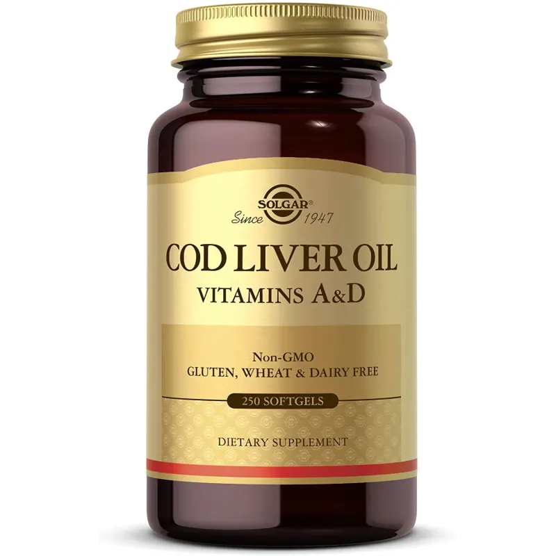 Solgar Aceite de Hígado de Bacalao en su presentación de 250 perlas es un complemento alimenticio que proporciona ácidos grasos omega-3 (EPA y DHA), vitaminas A, D y E, junto con zinc, potasio y fósforo, obtenidos de aceite de hígado de bacalao de alta pureza. Esta fórmula está pensada para quienes necesitan un suministro prolongado de estos nutrientes esenciales, contribuyendo al mantenimiento de funciones fisiológicas básicas y al aporte diario en dietas bajas en pescado o en fases de mayor requerimiento nutricional.