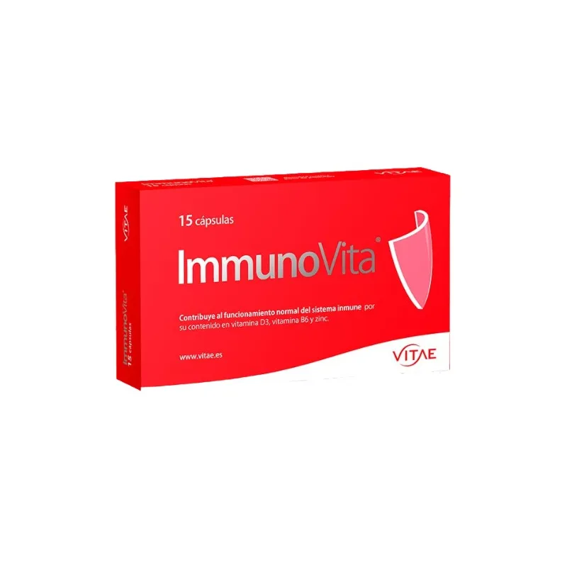 Vitae Immunovita es un complemento alimenticio formulado a base de Betaglucanos, Vitamina D3, Zinc y Vitamina B6. Los Betaglucanos procedentes de fuentes naturales están vinculados con el mantenimiento de las defensas; la Vitamina D3 contribuye al funcionamiento normal del sistema inmunitario y al mantenimiento de huesos y músculos; el Zinc promueve el funcionamiento normal del sistema inmunitario y la Vitamina B6 contribuye al metabolismo energético y a reducir el cansancio.