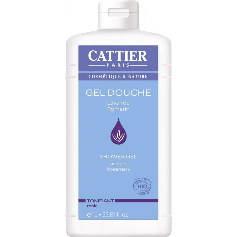 Cattier Gel de Ducha Tonificante viene en presentación de 1 litro. Su tapón favorece la aplicación y evita los derrames.