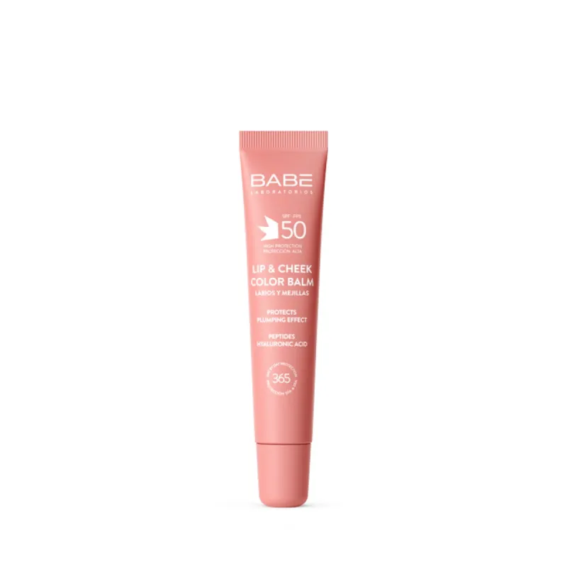 Babe Lip&Cheek Color Balm SPF 50 Color Pink es un bálsamo labial y colorete en formato bálsamo que proporciona un toque de color natural y protección solar. Su fórmula única combina ingredientes hidratantes y protectores para cuidar la piel de los labios y las mejillas.