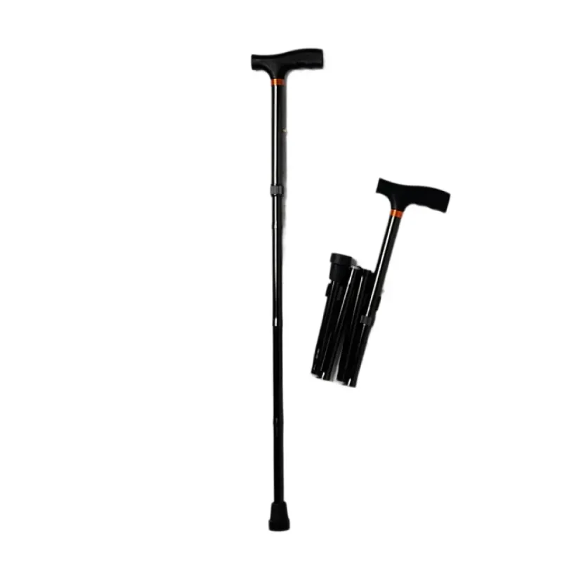 Bastón plegable y ligero que proporciona apoyo y estabilidad durante la marcha.