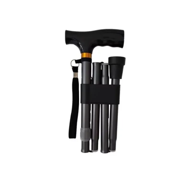 Bastón plegable y ligero que proporciona apoyo y estabilidad durante la marcha.