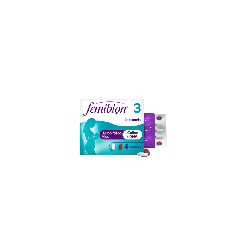 Femibion 3 es un complemento alimenticio compuesto por un blíster de comprimidos y un frasco de cápsulas, diseñado para aportar nutrientes esenciales durante la lactancia. Su formulación atiende las necesidades específicas de la madre y el lactante, facilitando la ingesta diaria de vitaminas, minerales y ácidos grasos de manera equilibrada.