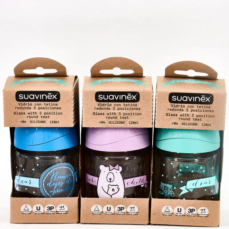 Presentación de Suavinex Biberon Vidrio Boca Ancha Tetina Redonda