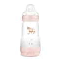 MAM Biberón Anti-Colic MATT en rosa, diseñado para aliviar cólicos en bebés de +2M. Contiene 260ml. Liviano, cómodo y con composición segura, brinda tranquilidad y confort.