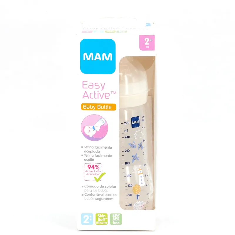 Biberón Bottle Mam Baby viene una presentación de botella la cual permite almacenar hasta 270 ml de líquido.
