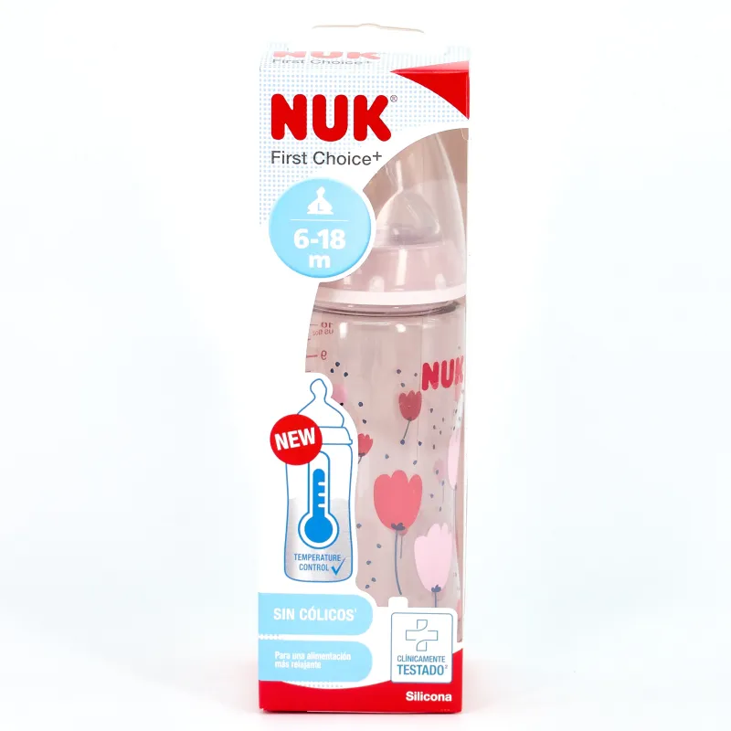 NUK Biberón Silicona 6-18 m TLes un biberón elaborado con un material resistente que apoya la alimentación segura del bebé. Su forma ergonómica posee un cuello extra ancho para facilitar el llenado y la limpieza del biberón.