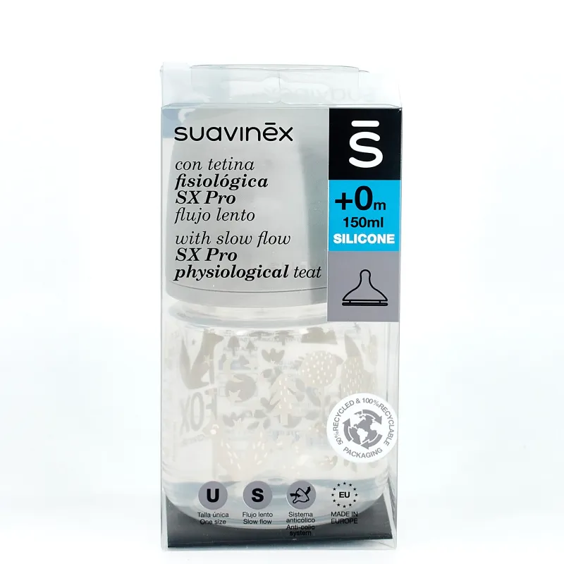 Presentación de Suavinex Biberón Tetina Fisiológica Silicona Flujo Lento