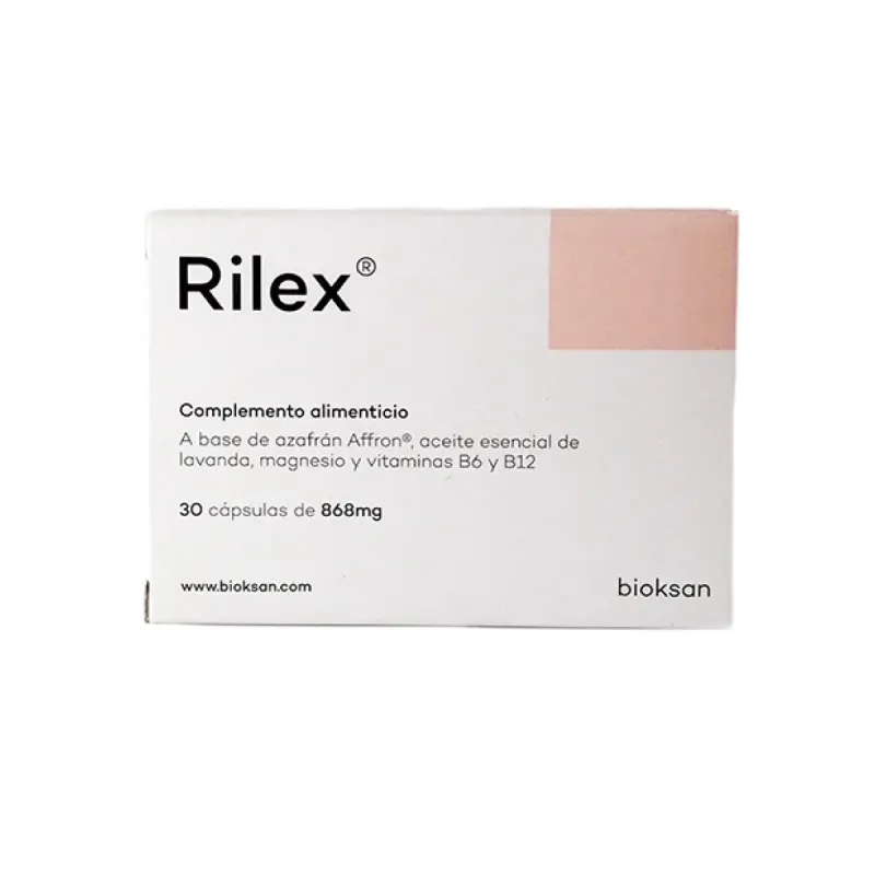 Bioksan Rilex es un complemento alimenticio en cápsulas vegetales que combina ingredientes de origen natural con propiedades reconocidas que pueden contribuir al funcionamiento normal del sistema nervioso y al equilibrio emocional. Su fórmula incluye magnesio bisglicinato, vitaminas del grupo B (B6 y B12), Affron® (extracto estandarizado de azafrán) y aceite esencial de lavanda. Está pensado para complementar la dieta de personas que desean mantener un estado de relajación y bienestar en situaciones de estrés o ritmo de vida elevado, siempre en el marco de un estilo de vida saludable.