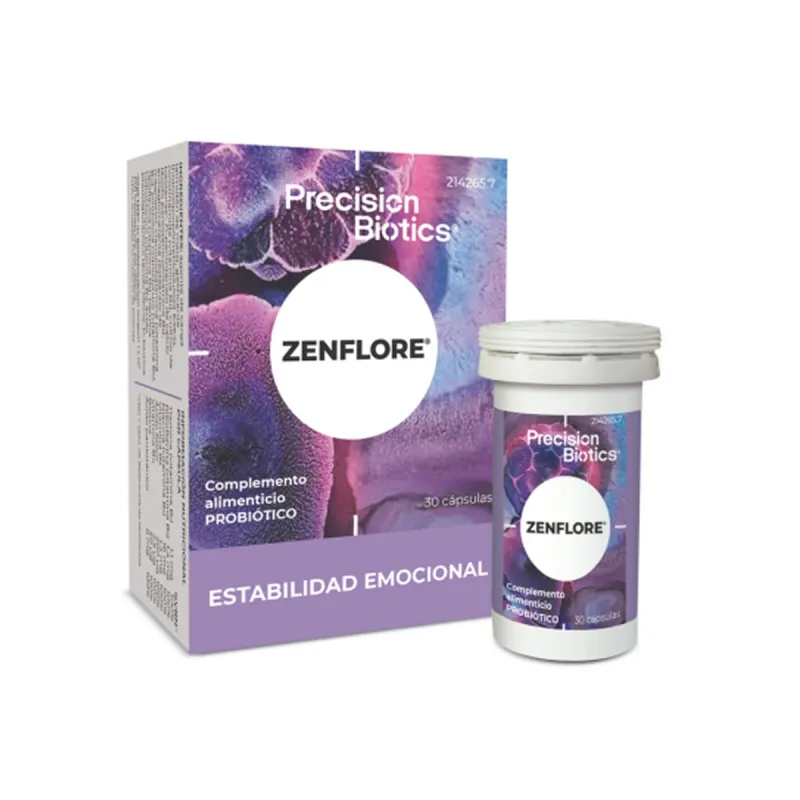 Zenflore es un complemento alimenticio en cápsulas que combina la cepa probiótica exclusiva Bifidobacterium longum 1714™ con un complejo de vitaminas del grupo B. Esta formulación está diseñada para respaldar las funciones psicológicas normales y contribuir al metabolismo energético habitual, especialmente en situaciones de estrés ocasional. Cada cápsula aporta una concentración establecida de bacterias vivas y micronutrientes que facilitan su asimilación y tolerancia. La presentación en envase sostenible protege la estabilidad de los ingredientes, garantiza su conservación óptima y permite una administración cómoda y discreta. No contiene gluten, lactosa ni colorantes artificiales.
