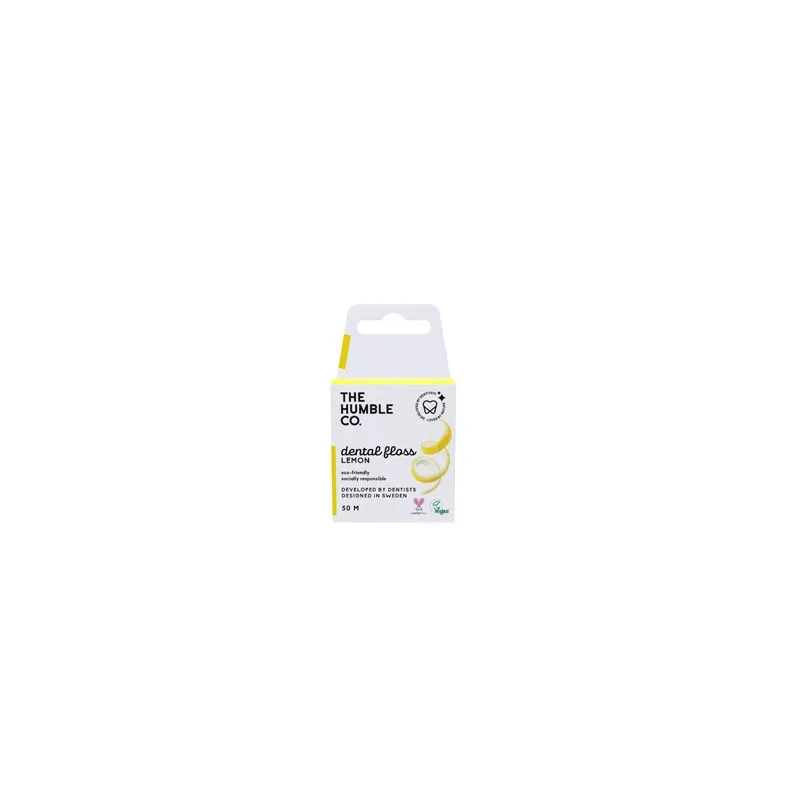 The Humble Co Hilo Dental Limón Eco Vegan 50 m es un hilo interdental elaborado con cera de origen natural, hilo de nailon biodegradable y aceite esencial de limón. Está diseñado para facilitar la limpieza entre los dientes donde el cepillo no alcanza y dejar una sensación de frescor cítrico.