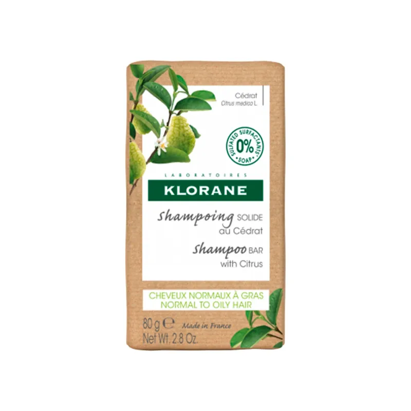 Champú sólido a la Cidra de Klorane con propiedades purificantes y tonificantes para energizar el cabello.