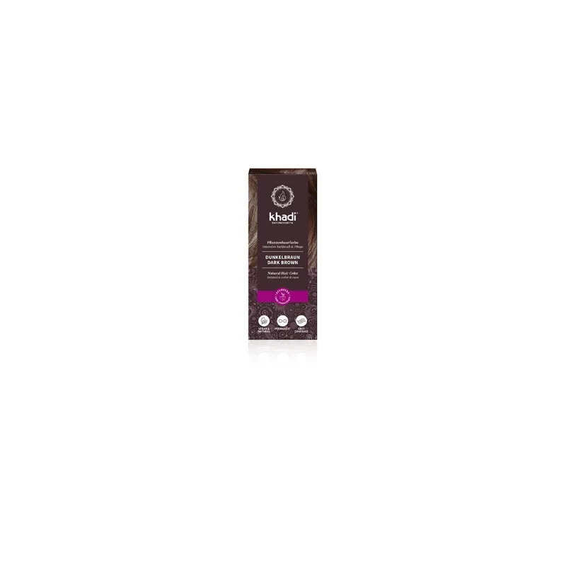Herbal Color Castaño Oscuro de Khadi es un tinte vegetal compuesto por henna, amla y jatropha, destinado a conseguir un color castaño oscuro intenso. Su fórmula 100% natural permite cubrir el cabello sin emplear amoníaco, peróxidos o PPD, al tiempo que cuida la fibra capilar.