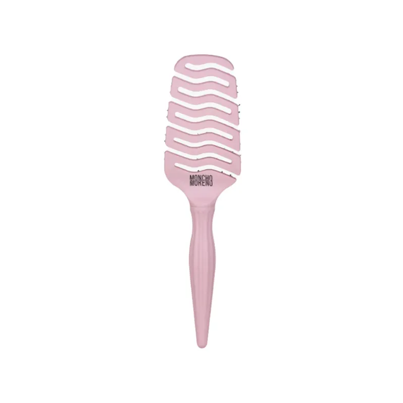 El Moncho Moreno Cepillo Magic Rosa es una herramienta capilar diseñada para facilitar el peinado y cuidado del cabello de forma suave y eficaz. Su estructura curvada, flexible y ventilada se adapta a la forma de la cabeza y combina cerdas naturales y sintéticas que desenredan el cabello sin tirar ni romper la fibra capilar, ayudando a reducir el frizz y a aportar brillo y suavidad al cabello. El diseño también permite un masaje suave del cuero cabelludo que contribuye a activar la circulación y mejorar la sensación de bienestar durante el peinado.