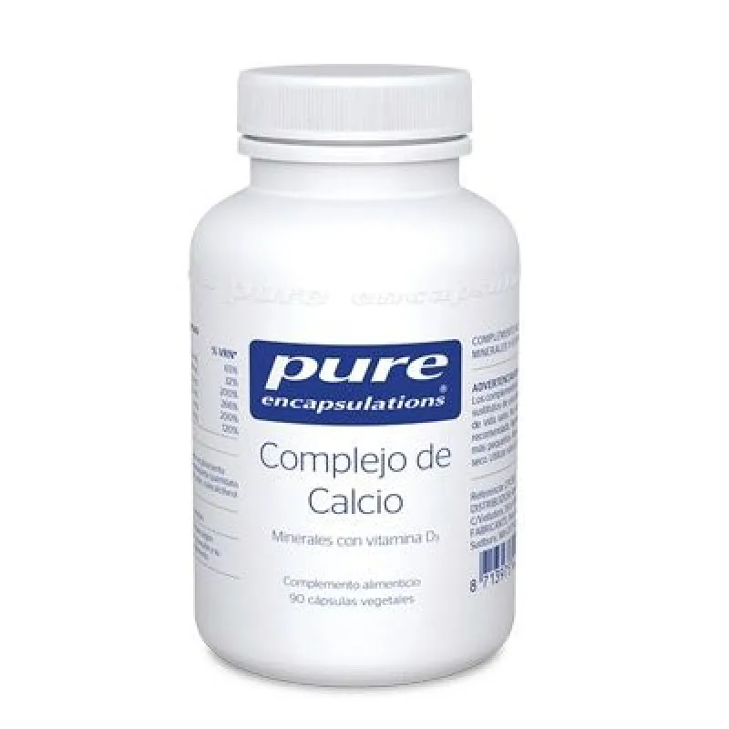 Pure Complejo de Calcio es un complemento alimenticio formulado con calcio, vitamina D3 y magnesio en cápsulas vegetales. Está diseñado para proporcionar un aporte equilibrado de estos nutrientes esenciales, contribuyendo a la salud ósea y al mantenimiento de una función muscular normal.
