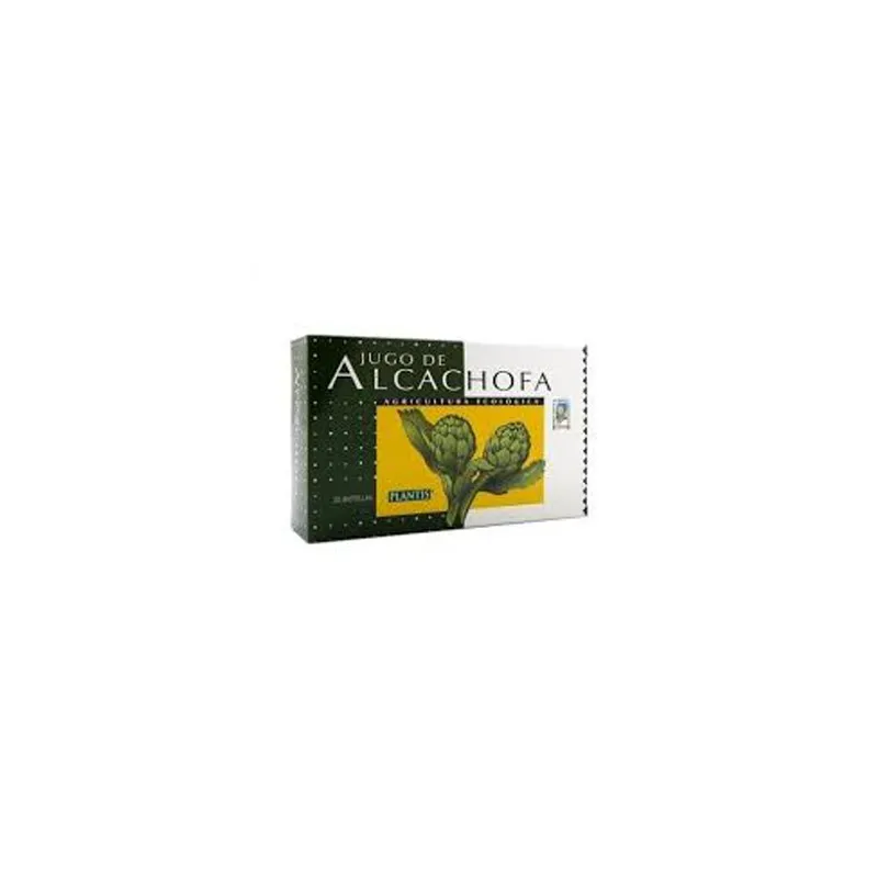 Plantis Jugo de Alcachofa Ecológico 20 Ampollas es un complemento alimenticio formulado con jugo biológico de Cynara scolymus (alcachofa) procedente de cultivo ecológico certificado. Cada ampolla contiene jugo concentrado de alcachofa y una pequeña cantidad de azúcar de caña para mejorar su sabor natural. Este producto está diseñado para complementar la ingesta de compuestos vegetales en una dieta variada, aportando componentes bioactivos propios de la alcachofa en una presentación cómoda y lista para consumir.